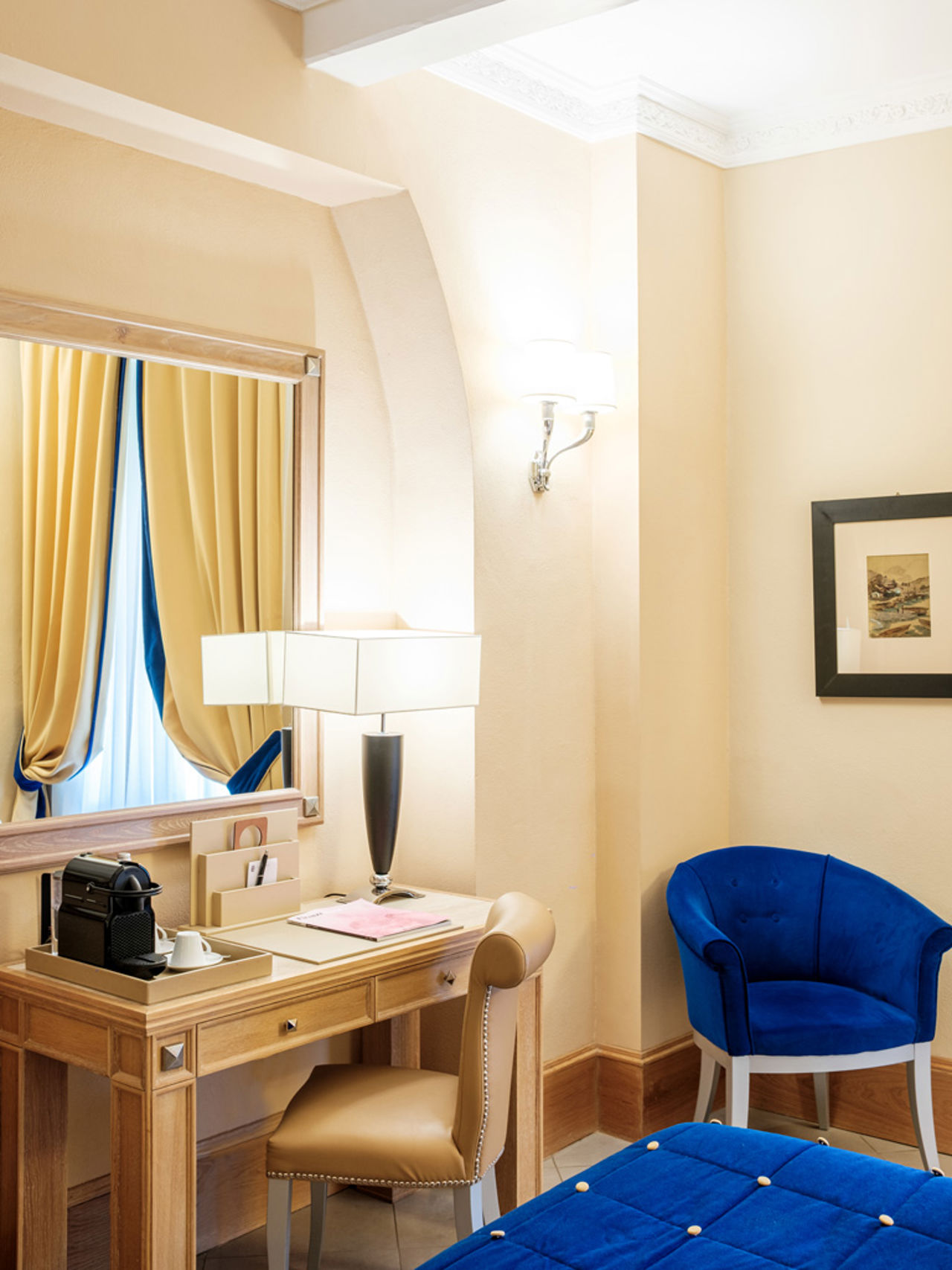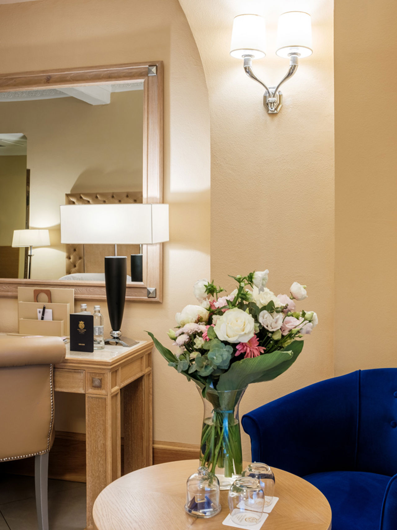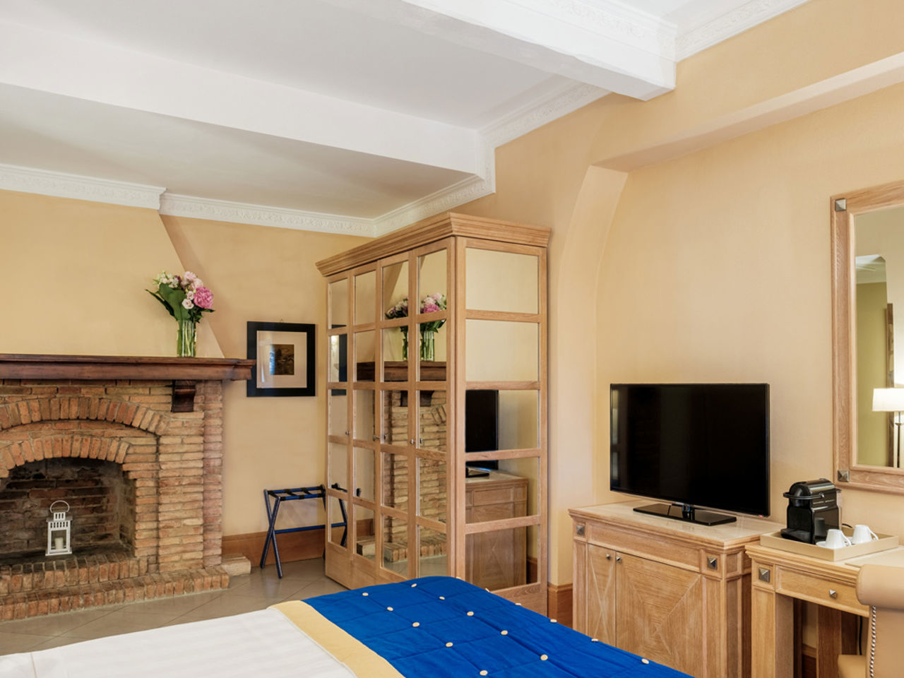 Dormire in una camera Superior di Villa Tolomei Hotel & Resort è un invito a rallentare, in un’atmosfera intima, perfetta per due persone che desiderano una pausa di relax e bellezza. Qui le finiture pregiate si uniscono a piccoli dettagli pensati per offrire il massimo comfort e a un’affascinante vista su Firenze o sul parco della tenuta. Il bagno, ispirato allo stile Old England e dotato di vasca o doccia, si completa di una selezione di prodotti dedicati al benessere quotidiano. Alcune camere dispongono anche di accesso diretto al giardino della villa.